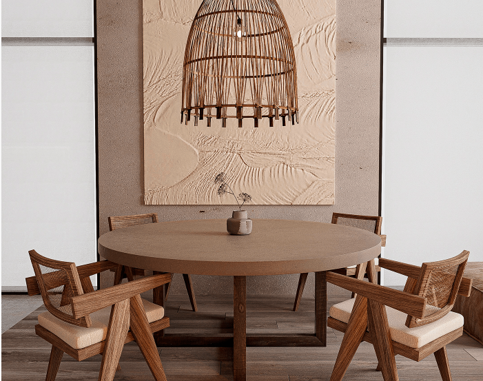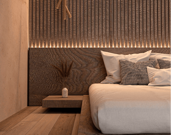 The "Mahogany Haven Retreat" bedroom is a serene sanctuary designed with a warm, woody ambiance. Embracing a palette of rich browns and mahogany hues, the space emanates a cozy and sophisticated atmosphere. The walls are adorned with deep-toned browns, creating a comforting backdrop that accentuates the natural elements within the room.